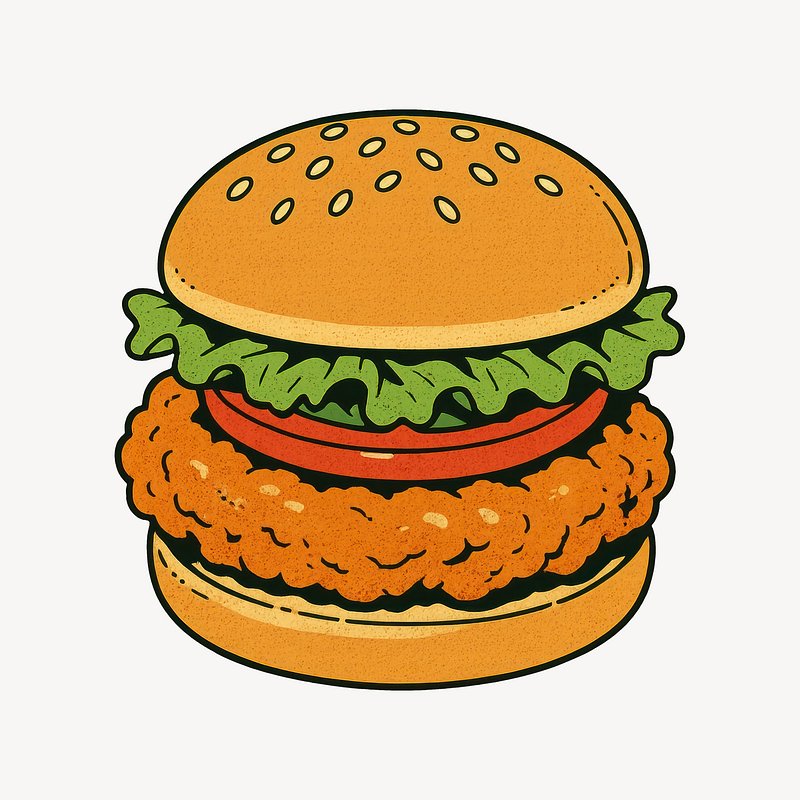 Crispy chicken burger illustration. https://www.rawpixel.com/image/24718141/crispy-chicken-burger-illustrationView license
