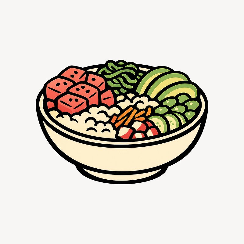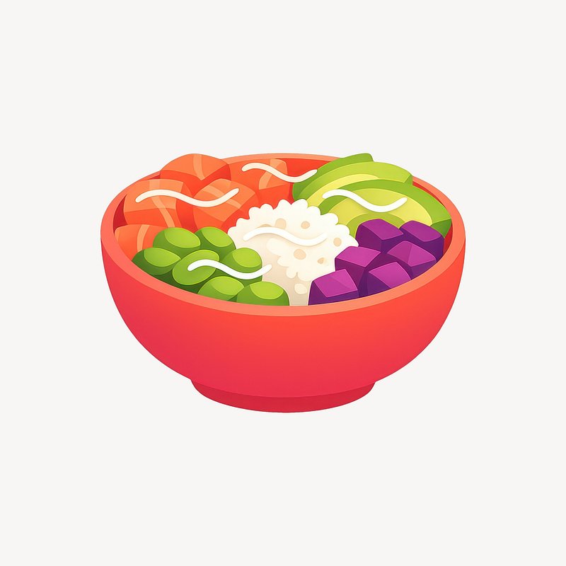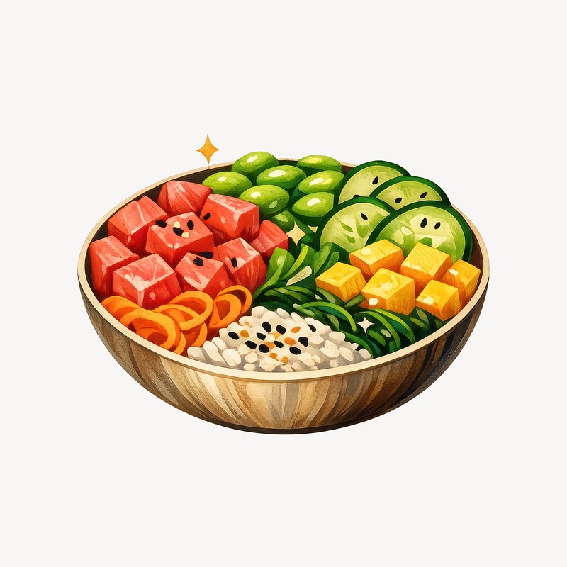 Colorful poke bowl illustration. https://www.rawpixel.com/image/25759119/colorful-poke-bowl-illustrationView license