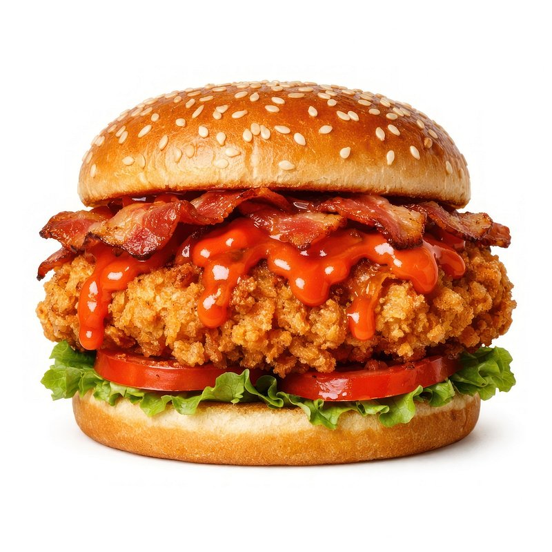 Crispy chicken burger with bacon. https://www.rawpixel.com/image/26113615/crispy-chicken-burger-with-baconView license
