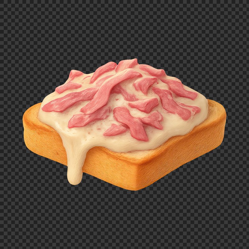 PNG Creamy toast with bacon topping. https://www.rawpixel.com/image/20238963/png-creamy-toast-with-bacon-toppingView license