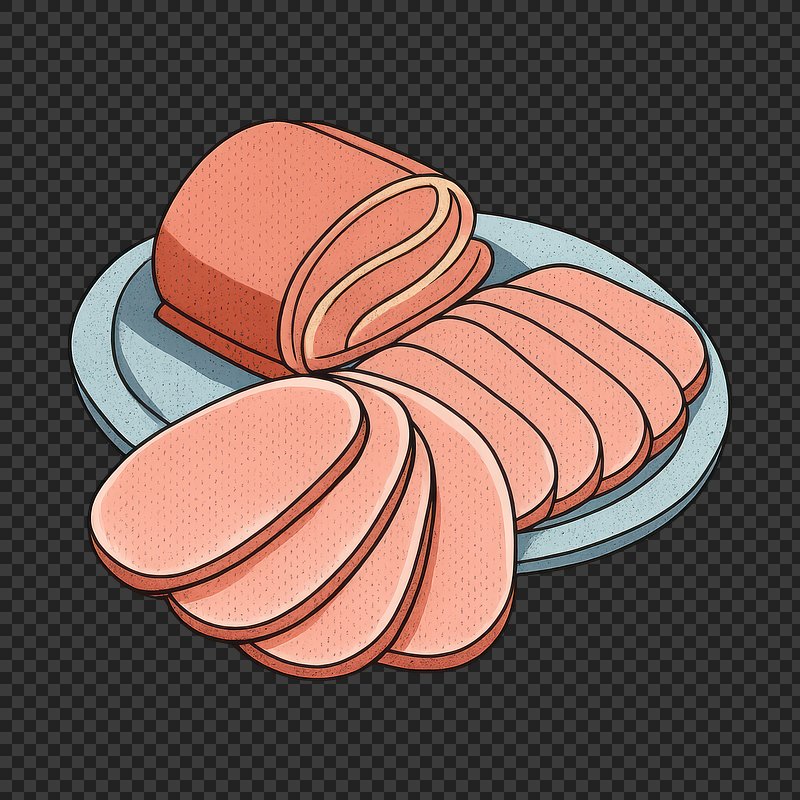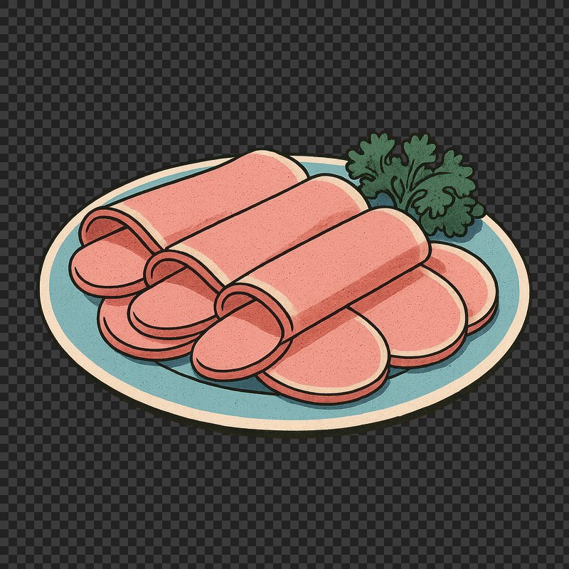 PNG Illustration of sliced luncheon meat. https://www.rawpixel.com/image/24667828/png-illustration-sliced-luncheon-meatView license