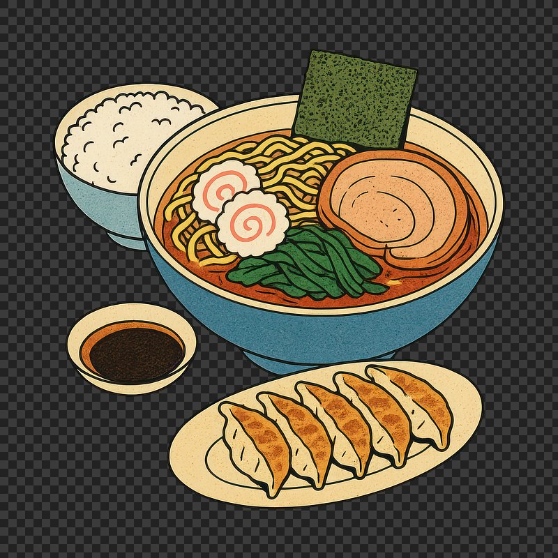 PNG Japanese cuisine illustration featuring ramen. https://www.rawpixel.com/image/24667513/png-japanese-cuisine-illustration-featuring-ramenView license