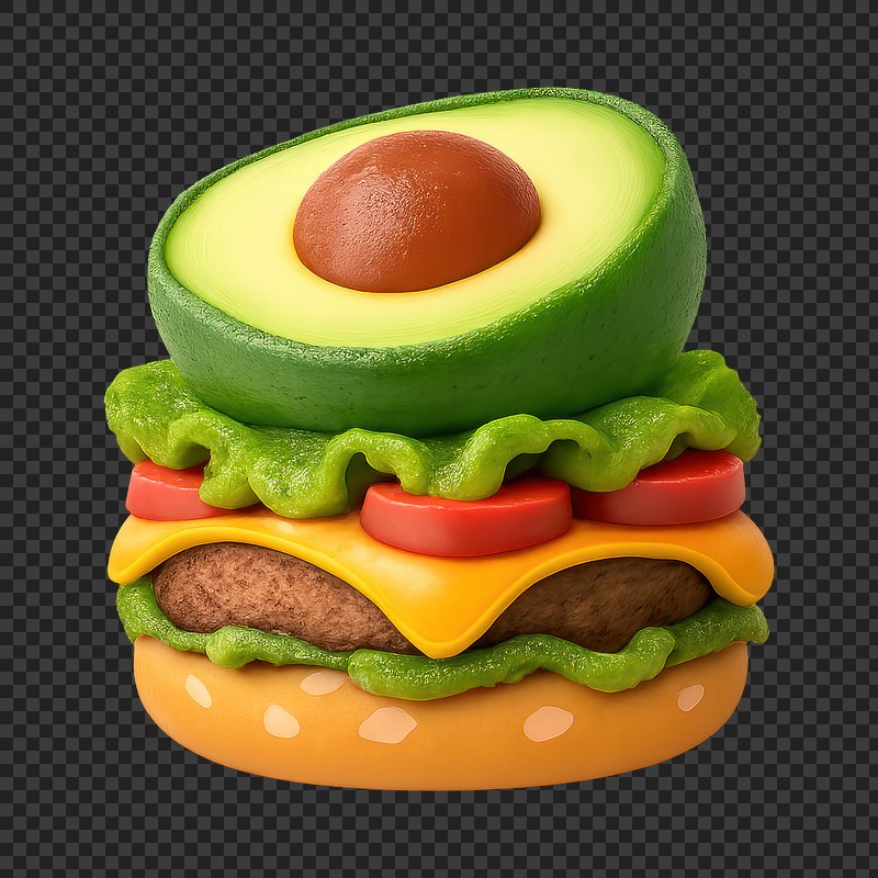 PNG Colorful 3D avocado burger illustration. https://www.rawpixel.com/image/25035913/png-colorful-avocado-burger-illustrationView license