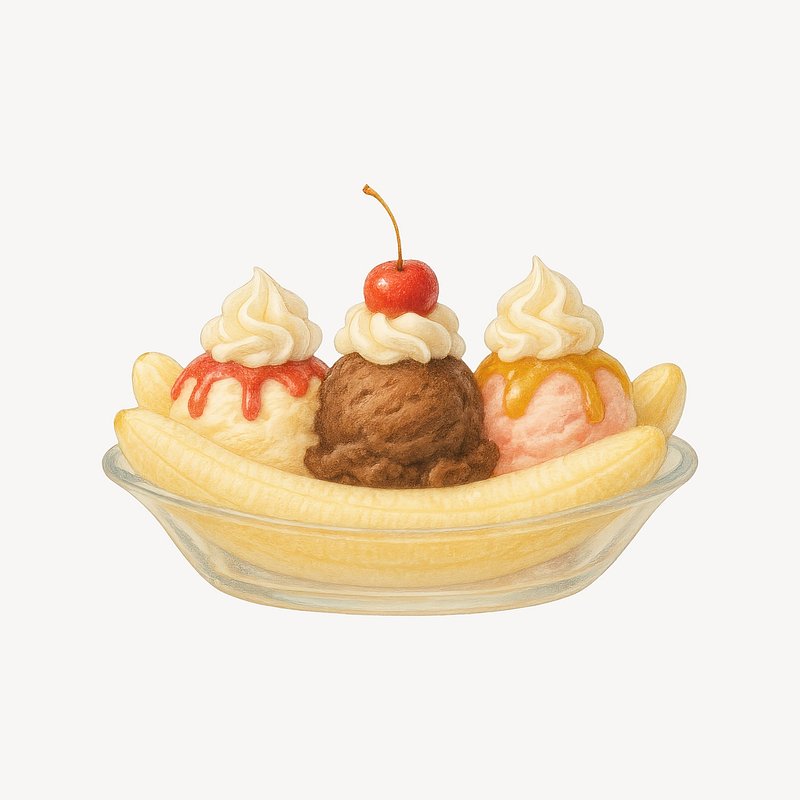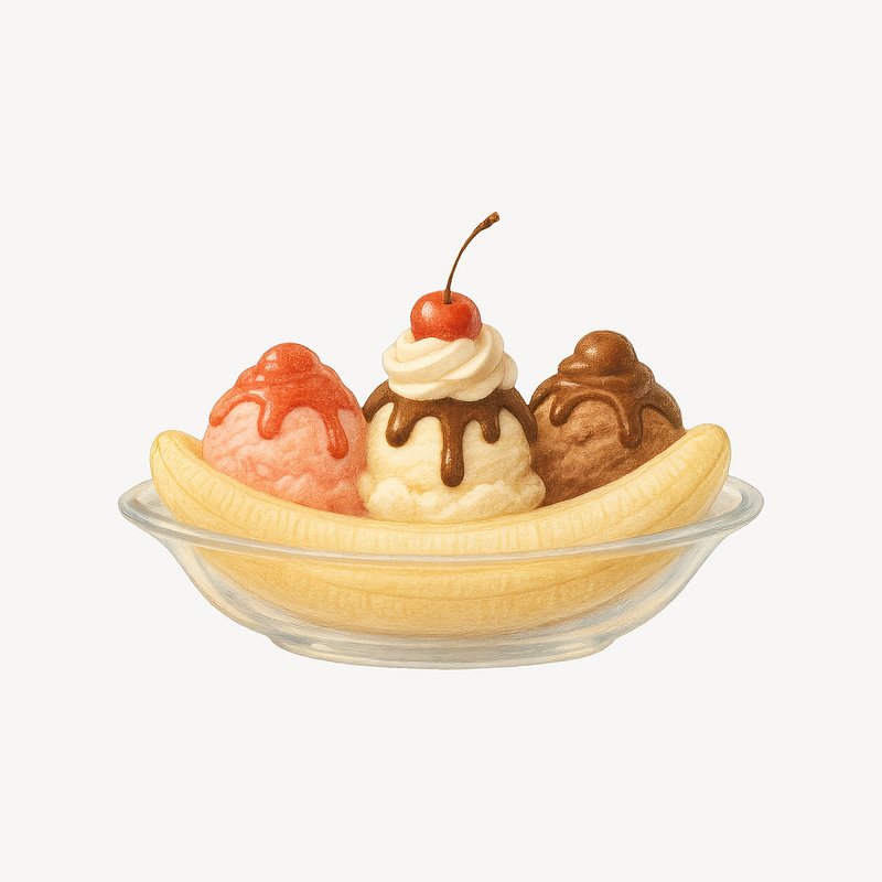 Classic banana split dessert illustration. https://www.rawpixel.com/image/21623841/classic-banana-split-dessert-illustrationView license