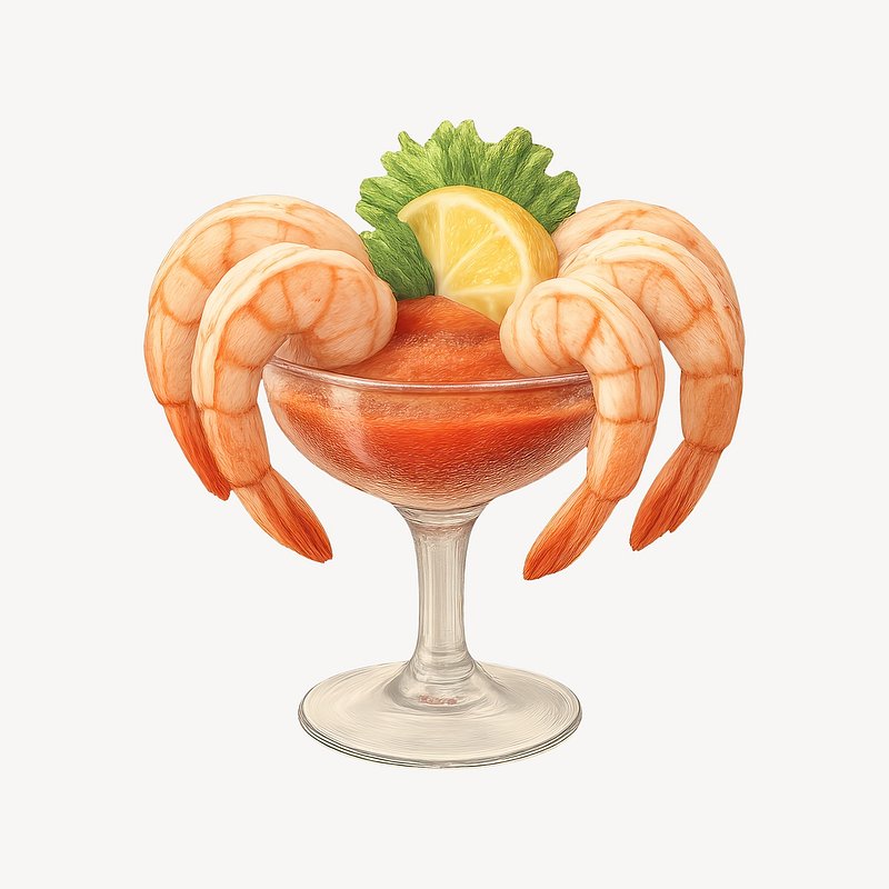 Elegant shrimp cocktail illustration. https://www.rawpixel.com/image/21625721/elegant-shrimp-cocktail-illustrationView license
