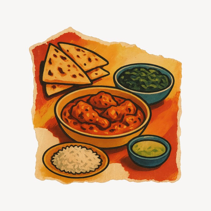 Colorful Indian cuisine illustration. https://www.rawpixel.com/image/24575663/colorful-indian-cuisine-illustrationView license