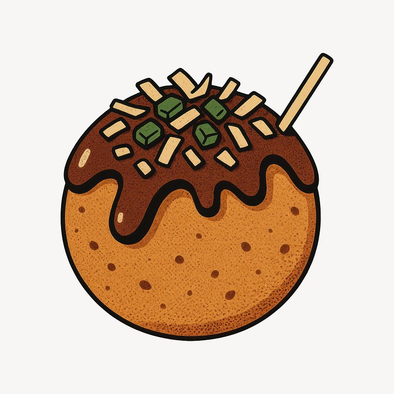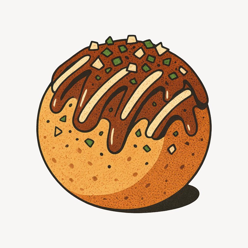 Illustrated takoyaki with toppings. https://www.rawpixel.com/image/24717889/illustrated-takoyaki-with-toppingsView license
