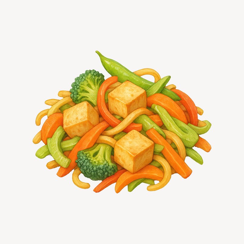 Colorful tofu vegetable stir-fry. https://www.rawpixel.com/image/21623229/colorful-tofu-vegetable-stir-fryView license