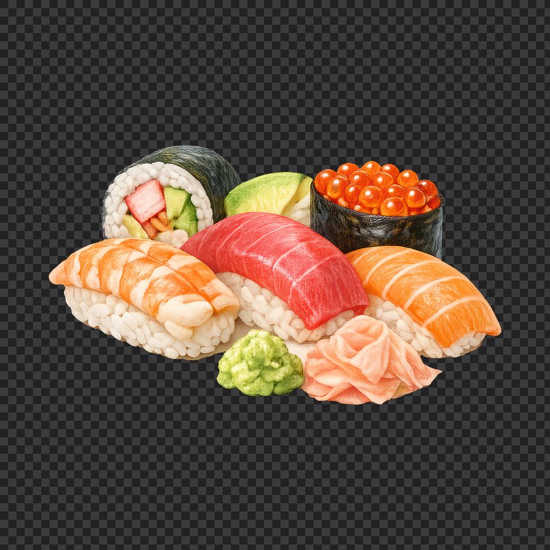 PNG Vibrant sushi assortment illustration. https://www.rawpixel.com/image/25385473/png-vibrant-sushi-assortment-illustrationView license