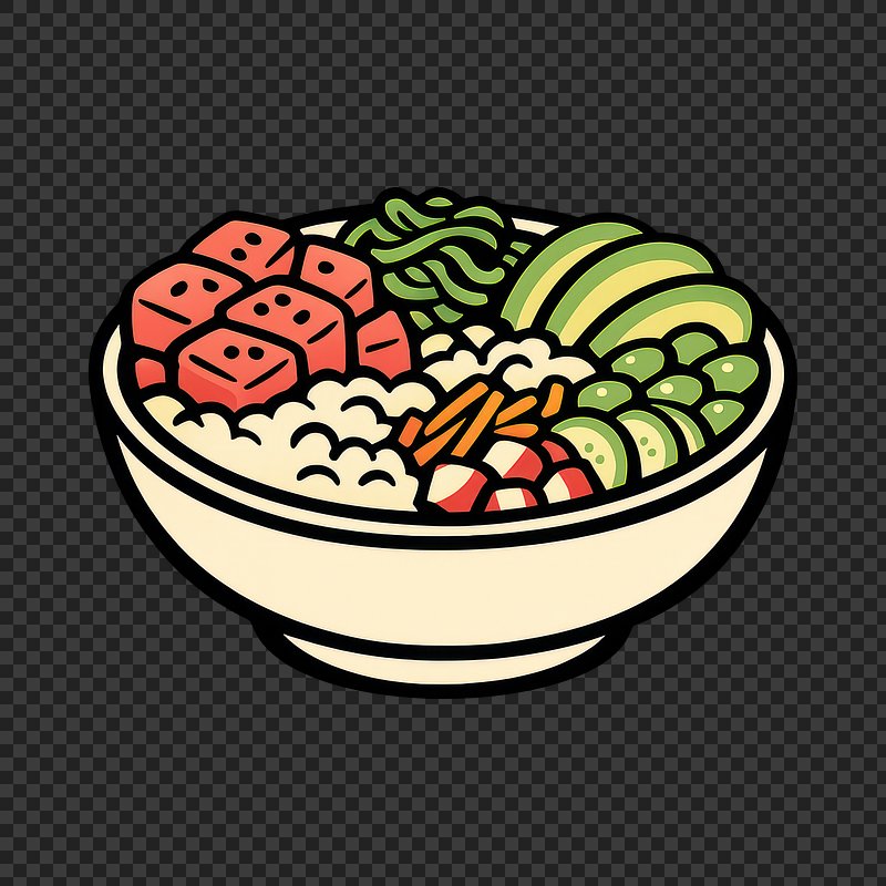 PNG Colorful poke bowl illustration. https://www.rawpixel.com/image/25709572/png-colorful-poke-bowl-illustrationView license