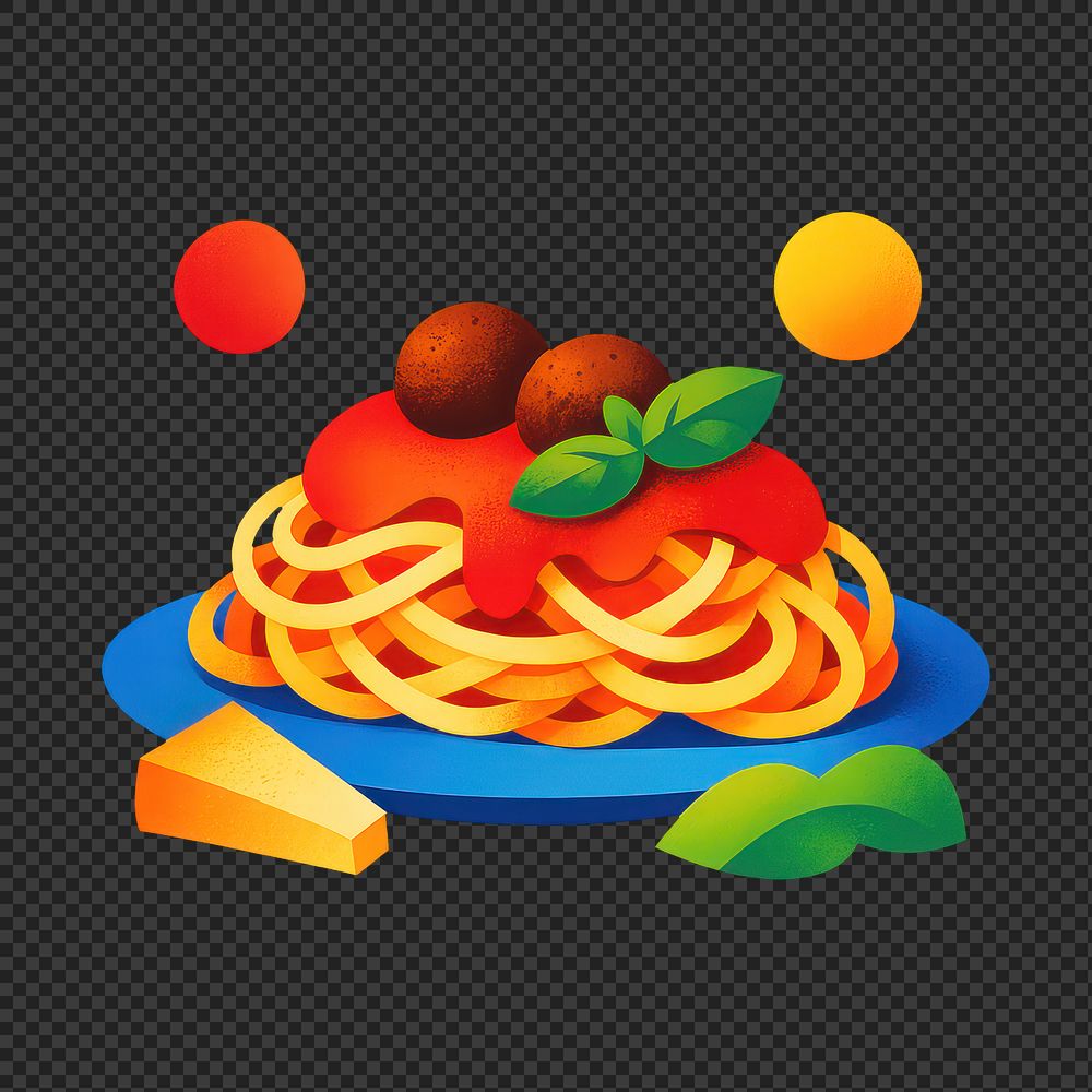 PNG Colorful spaghetti dish illustration. https://www.rawpixel.com/image/25725831/png-colorful-spaghetti-dish-illustrationView license