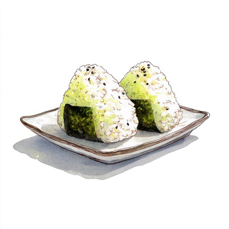 Onigiri food illustration watercolor. https://www.rawpixel.com/image/19061855/onigiri-food-illustration-watercolorView license