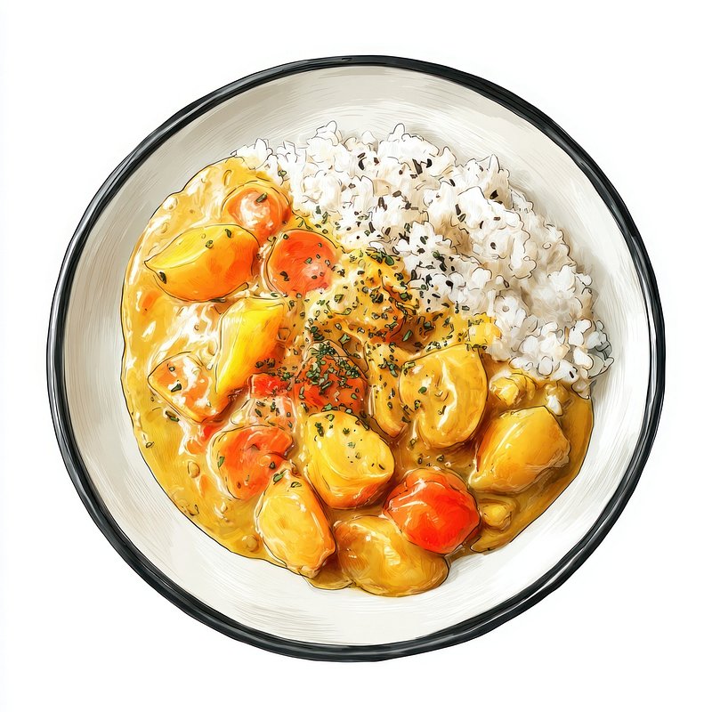 Japan curry rice plate food illustration. https://www.rawpixel.com/image/19061895/japan-curry-rice-plate-food-illustrationView license
