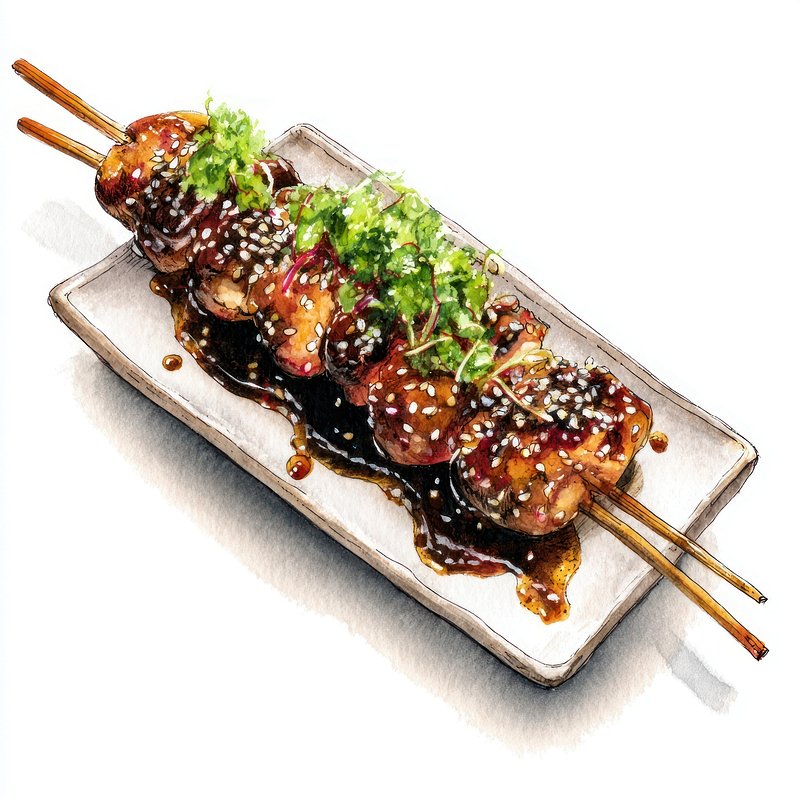 Yakitori food illustration watercolor. https://www.rawpixel.com/image/19061708/yakitori-food-illustration-watercolorView license