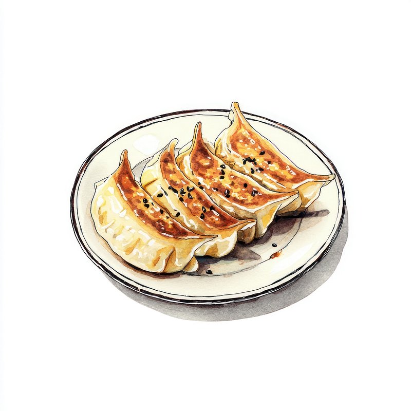 Gyoza plate illustration food. https://www.rawpixel.com/image/19060084/gyoza-plate-illustration-foodView license