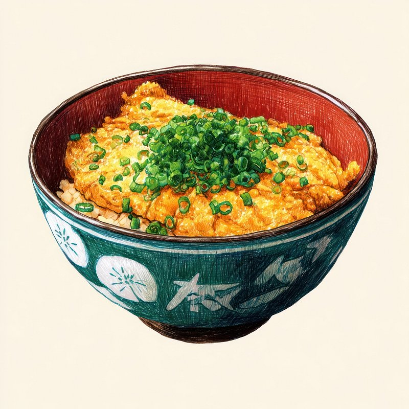 Katsudon illustration bowl food. https://www.rawpixel.com/image/19061417/katsudon-illustration-bowl-foodView license