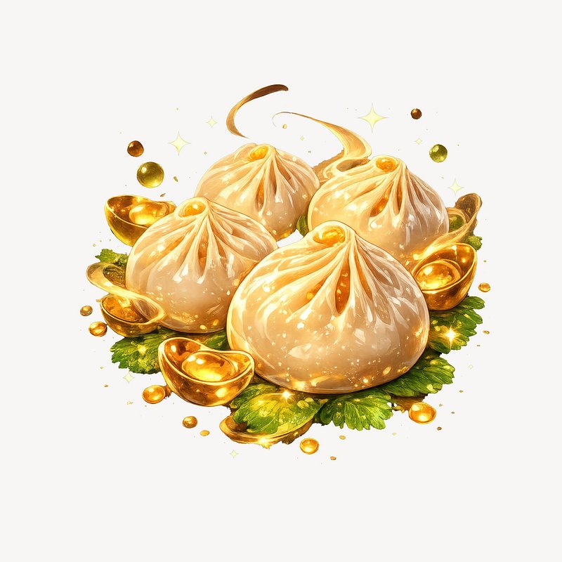 Golden dumplings with decorative coins. https://www.rawpixel.com/image/25063535/golden-dumplings-with-decorative-coinsView license