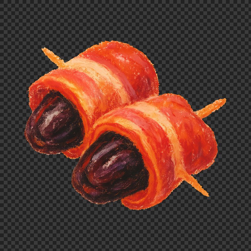 PNG Delicious bacon-wrapped dates illustration. https://www.rawpixel.com/image/22134743/png-delicious-bacon-wrapped-dates-illustrationView license