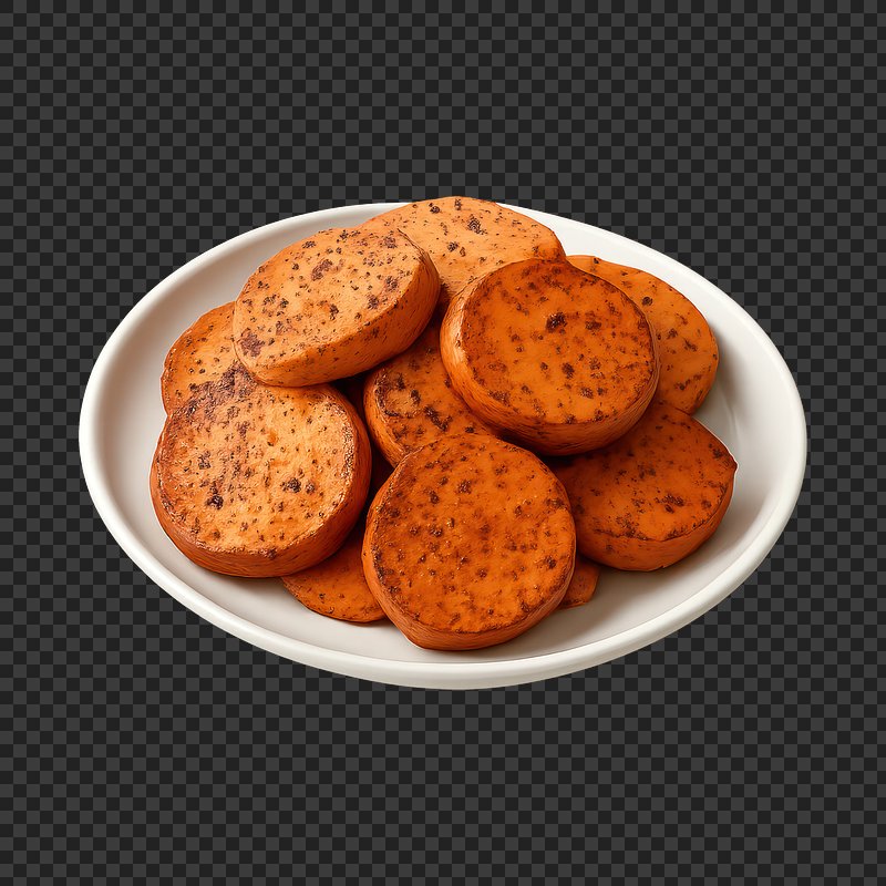 PNG Sliced sweet potatoes on plate. https://www.rawpixel.com/image/18869340/png-sliced-sweet-potatoes-plateView license