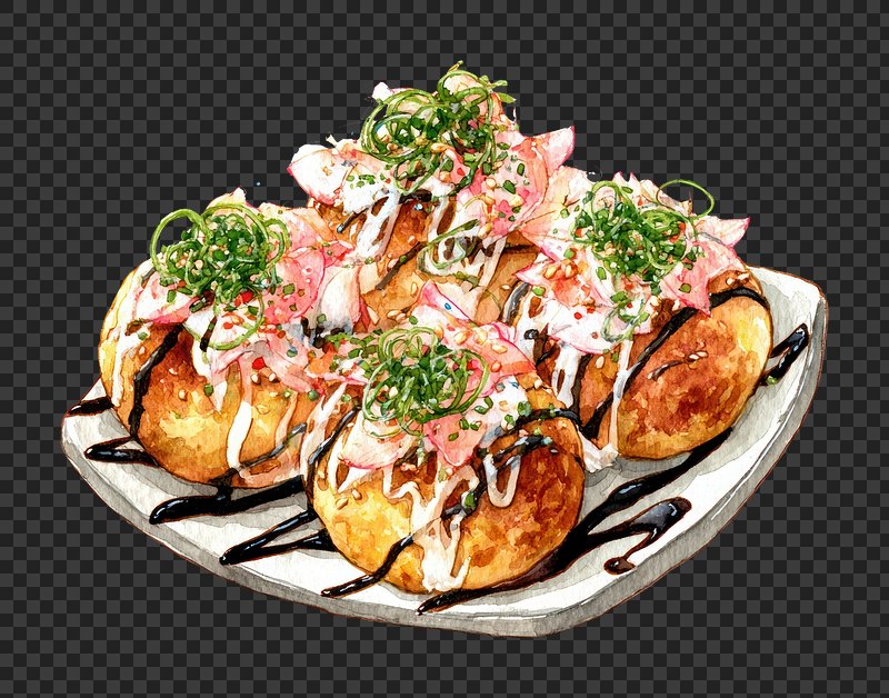 PNG Takoyaki food illustration watercolor. https://www.rawpixel.com/image/19175552/png-takoyaki-food-illustration-watercolorView license
