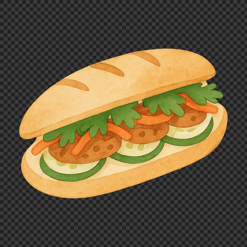 PNG Illustrated Vietnamese sandwich baguette. https://www.rawpixel.com/image/18621414/png-illustrated-vietnamese-sandwich-baguetteView license