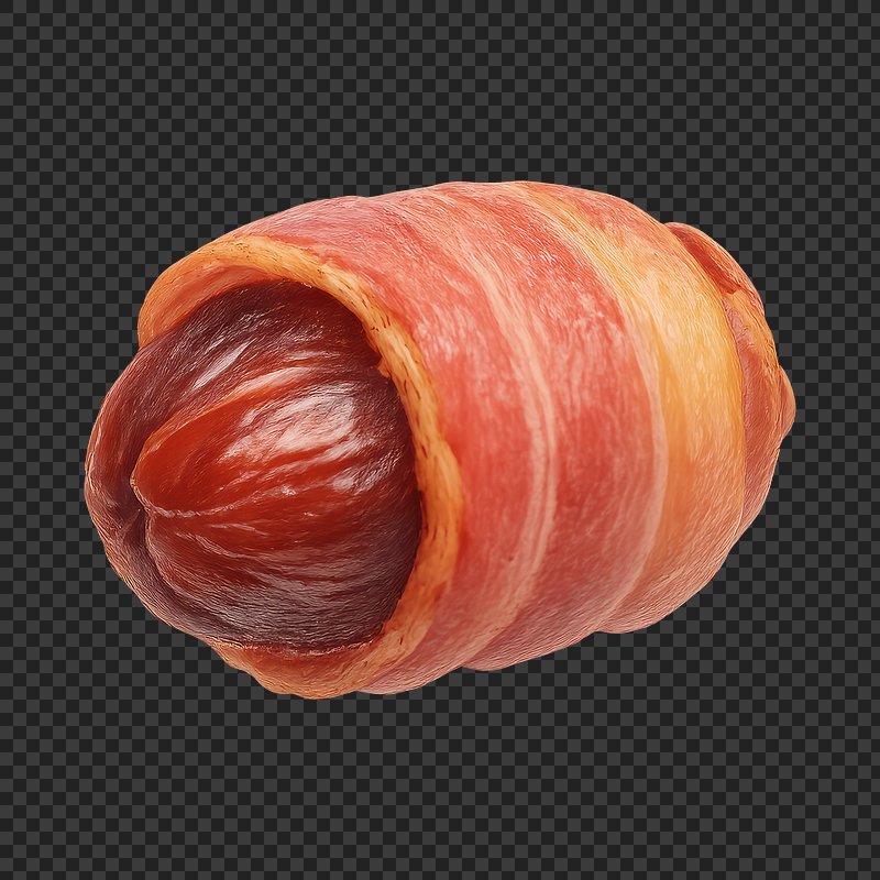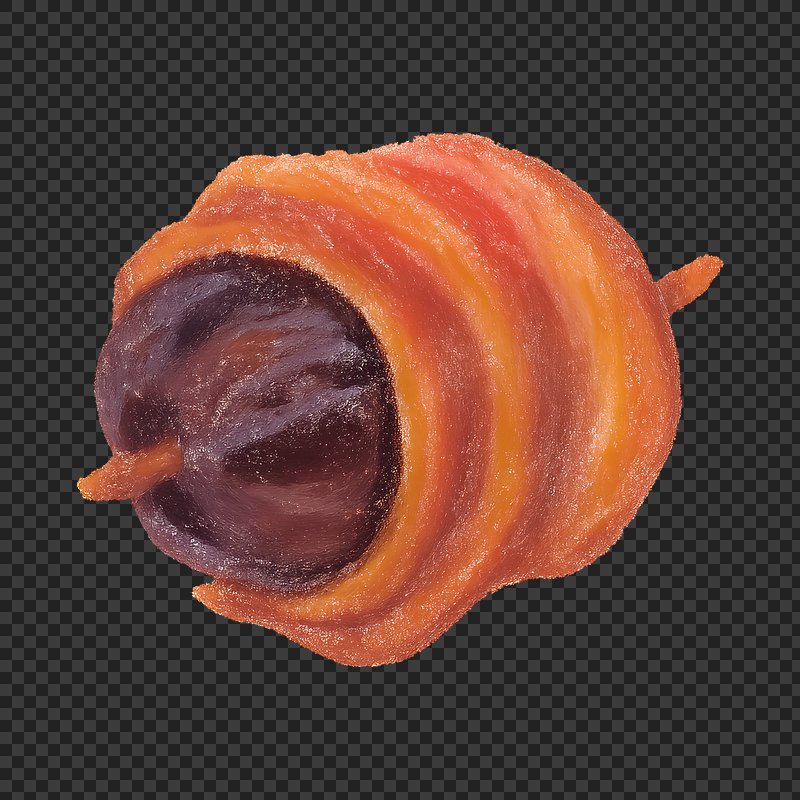 PNG Realistic bacon-wrapped date illustration. https://www.rawpixel.com/image/23442138/png-realistic-bacon-wrapped-date-illustrationView license
