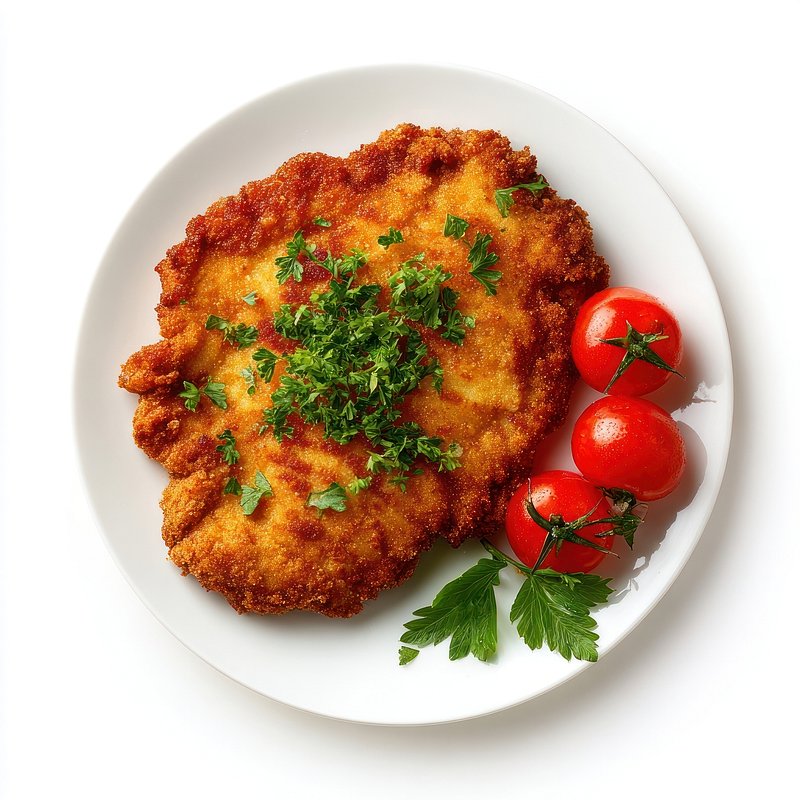Schnitzel on a plate white meal dish. https://www.rawpixel.com/image/18353545/schnitzel-plate-white-meal-dishView license