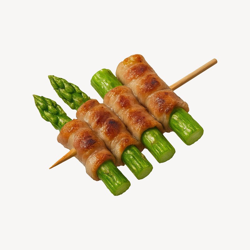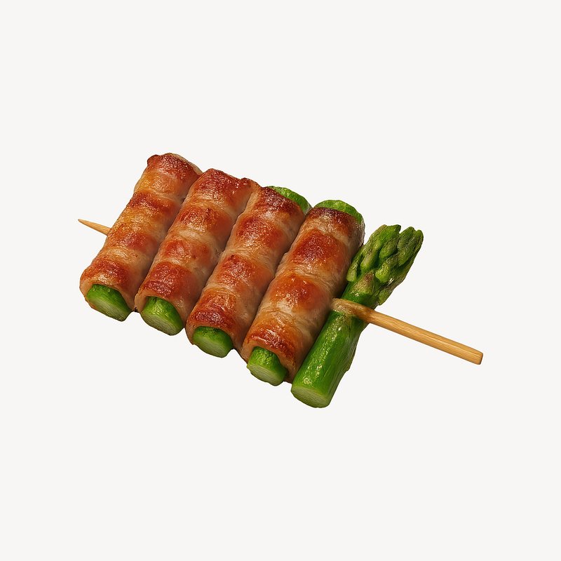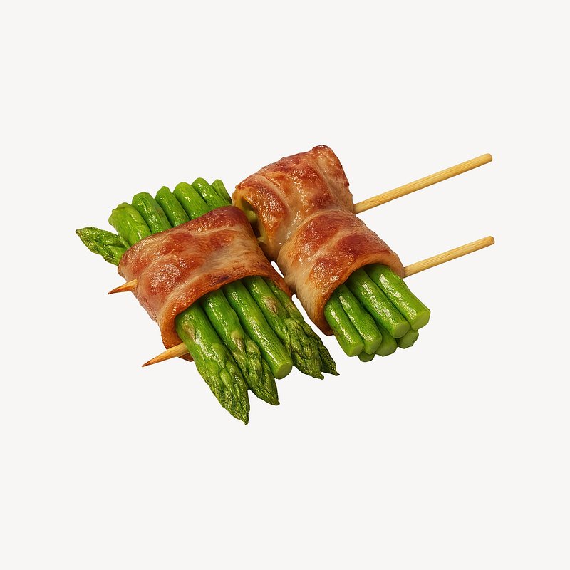 Grilled bacon-wrapped asparagus skewers. https://www.rawpixel.com/image/21473024/grilled-bacon-wrapped-asparagus-skewersView license