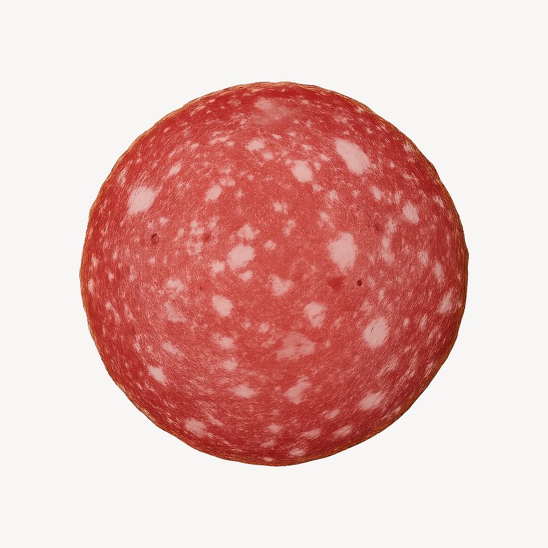 Round salami slice texture. https://www.rawpixel.com/image/21474815/round-salami-slice-textureView license