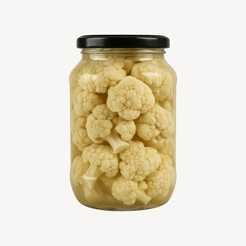 Pickled cauliflower in jar. https://www.rawpixel.com/image/21471369/pickled-cauliflower-jarView license