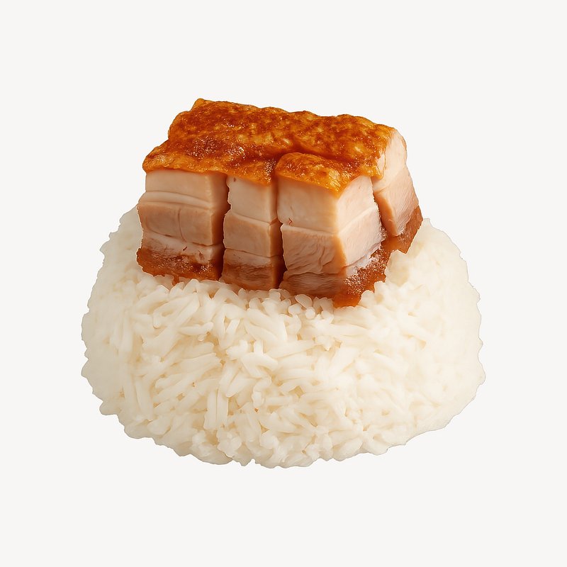 Crispy pork atop steamed rice. https://www.rawpixel.com/image/21470229/crispy-pork-atop-steamed-riceView license