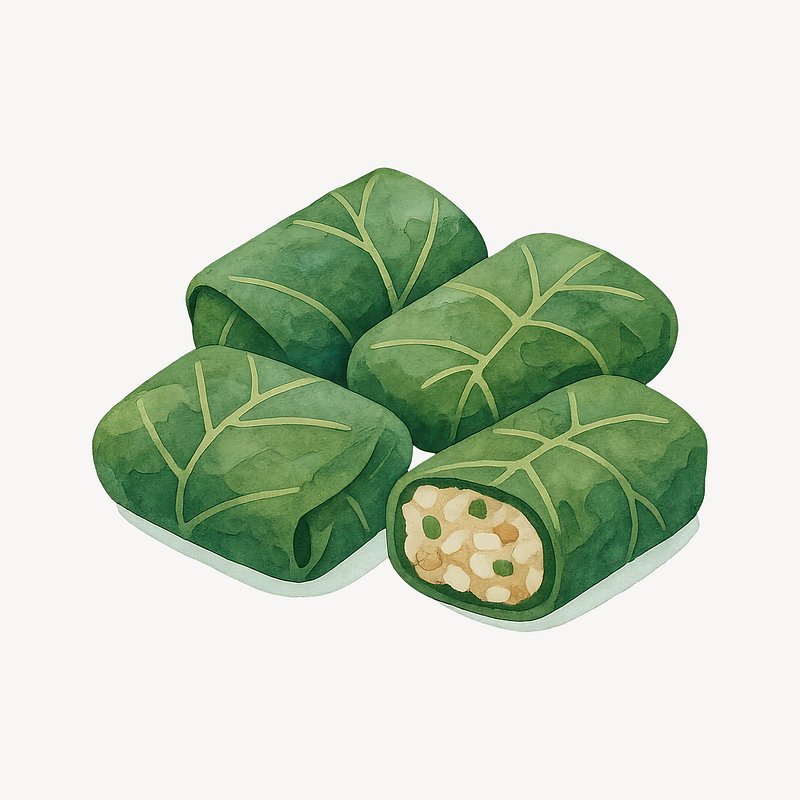 Illustration of stuffed grape leaves. https://www.rawpixel.com/image/20641364/illustration-stuffed-grape-leavesView license