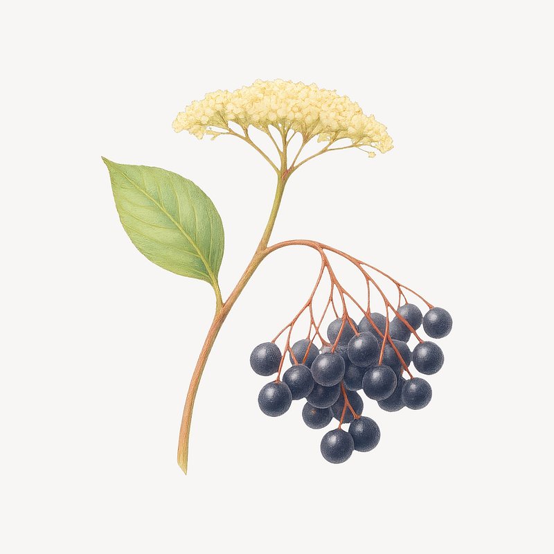Elderberry botanical illustration art. https://www.rawpixel.com/image/21695158/elderberry-botanical-illustration-artView license