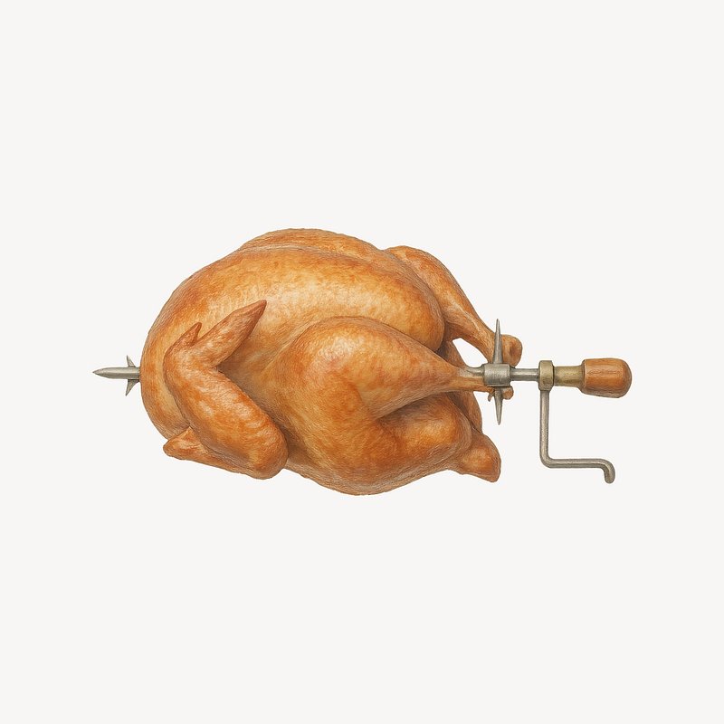 Roasted chicken on spit illustration. https://www.rawpixel.com/image/21622951/roasted-chicken-spit-illustrationView license