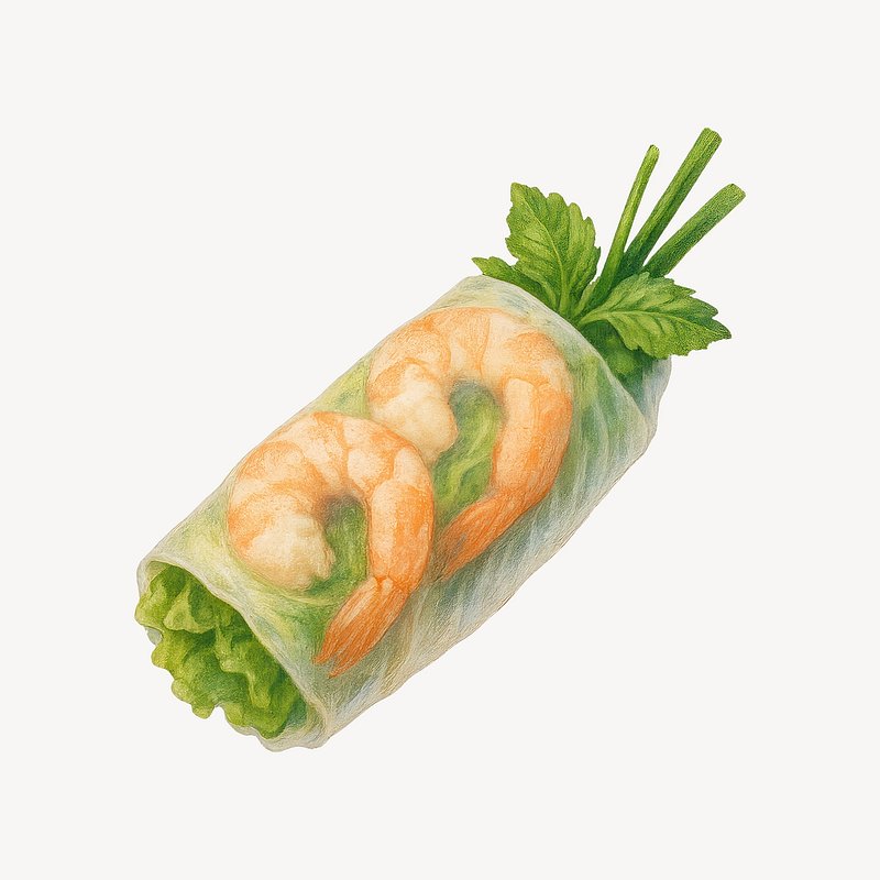 Fresh shrimp spring roll illustration. https://www.rawpixel.com/image/21622783/fresh-shrimp-spring-roll-illustrationView license
