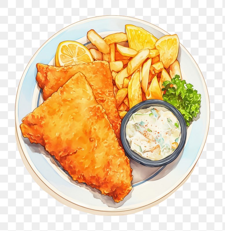 PNG Fish and chips on plate dish food meal. https://www.rawpixel.com/image/16830935/png-fish-and-chips-plate-dish-food-mealView license