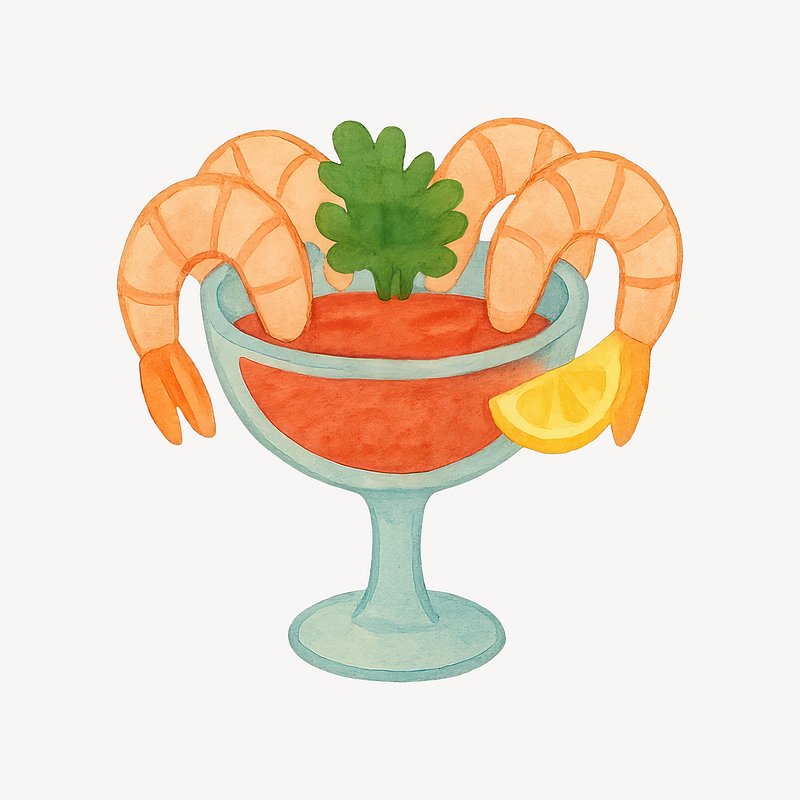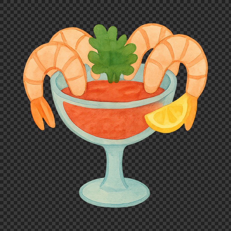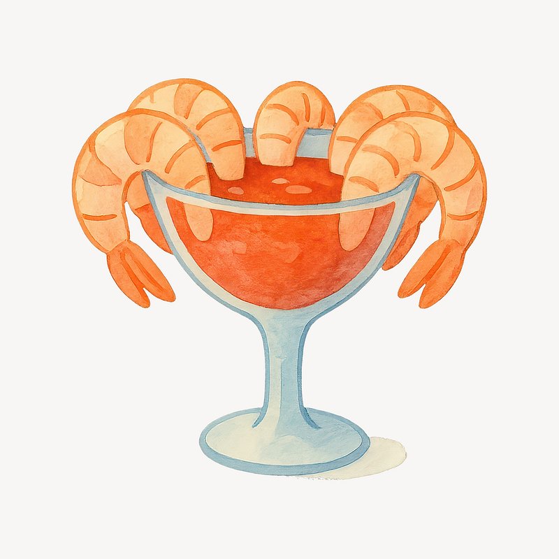Shrimp cocktail watercolor illustration. https://www.rawpixel.com/image/19450047/shrimp-cocktail-watercolor-illustrationView license