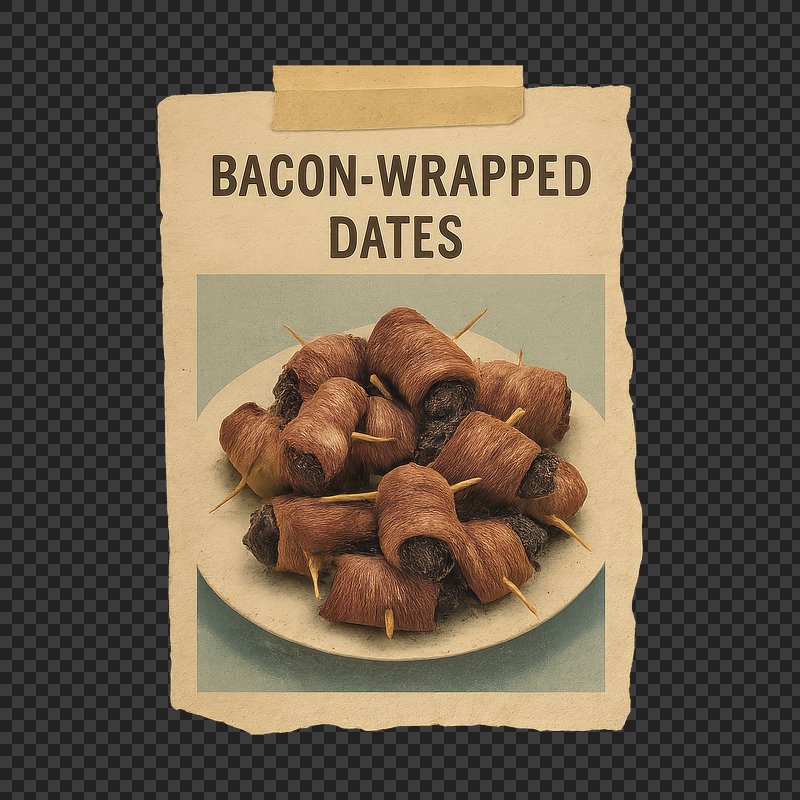 PNG Retro bacon-wrapped dates illustration. https://www.rawpixel.com/image/22134734/png-retro-bacon-wrapped-dates-illustrationView license