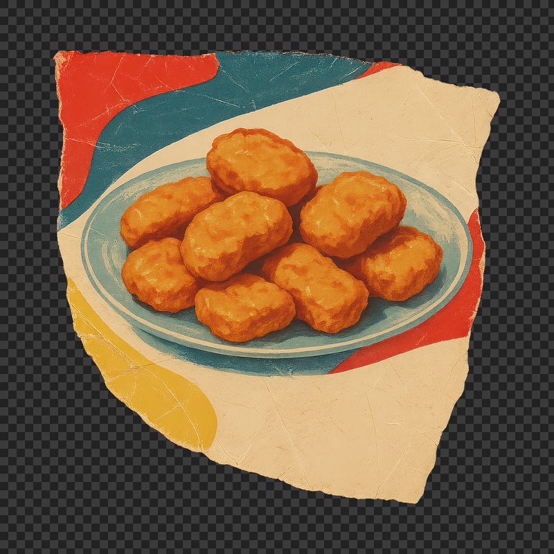 PNG Retro chicken nuggets art. https://www.rawpixel.com/image/24409831/png-retro-chicken-nuggets-artView license