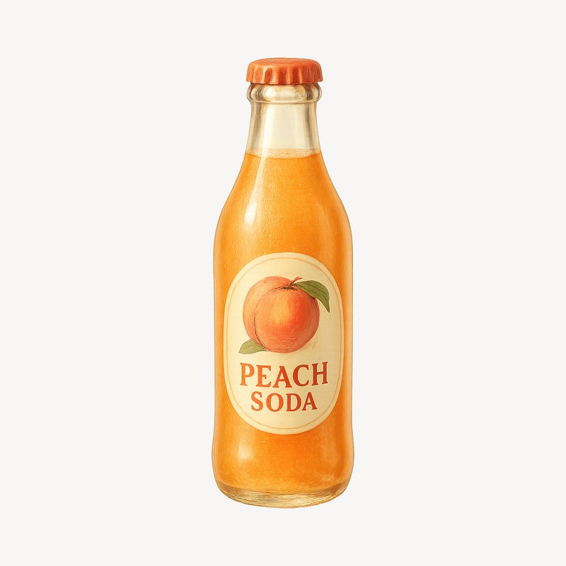Vintage peach soda bottle illustration. https://www.rawpixel.com/image/21624213/vintage-peach-soda-bottle-illustrationView license
