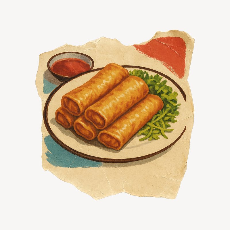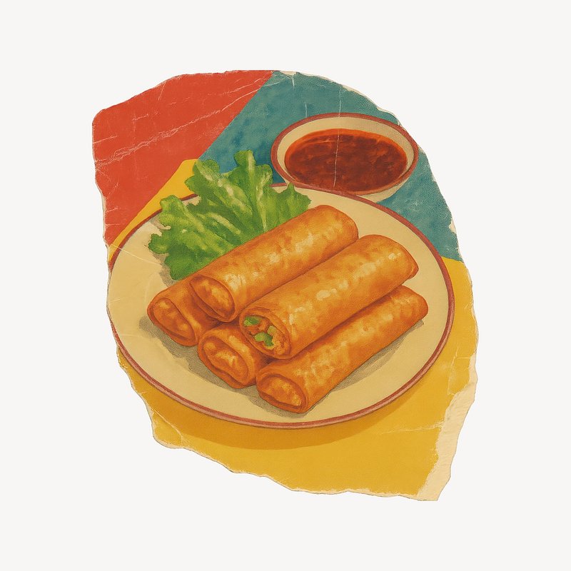 Vintage spring rolls illustration. https://www.rawpixel.com/image/24567593/vintage-spring-rolls-illustrationView license