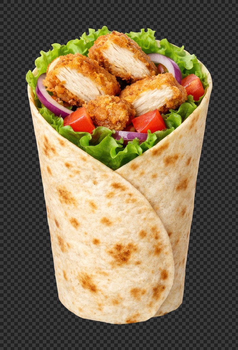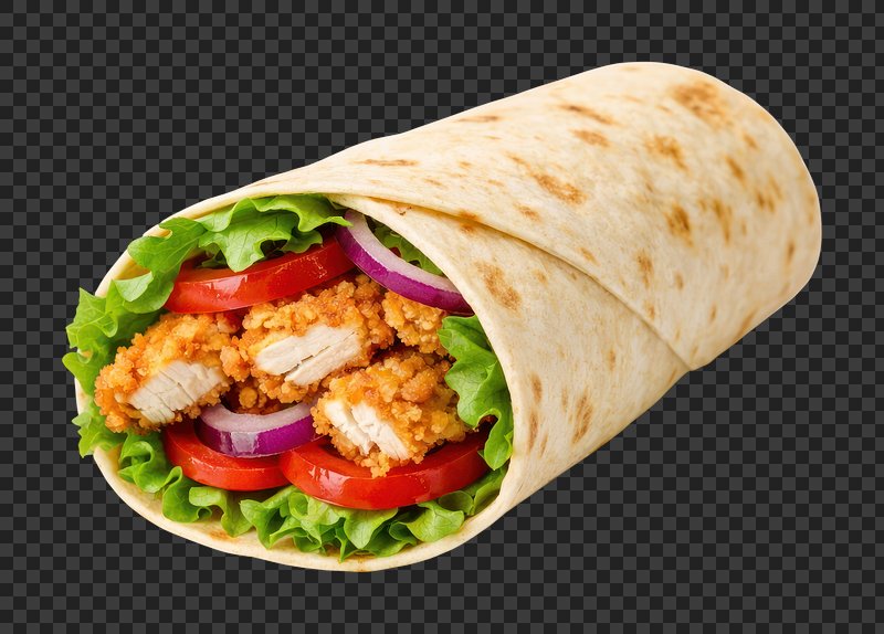 PNG Crispy chicken wrap with vegetables. https://www.rawpixel.com/image/25862152/png-crispy-chicken-wrap-with-vegetablesView license