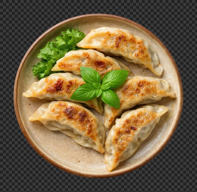 PNG Delicious fried dumplings with basil. https://www.rawpixel.com/image/26065469/png-delicious-fried-dumplings-with-basilView license