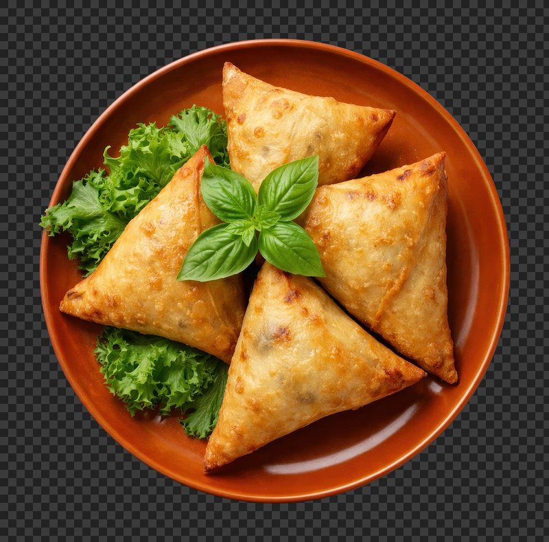 PNG Crispy samosas with fresh garnish. https://www.rawpixel.com/image/26059826/png-crispy-samosas-with-fresh-garnishView license