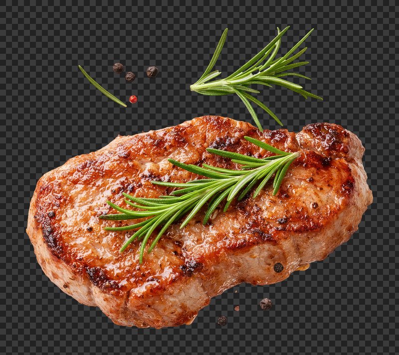 PNG Grilled steak garnished with rosemary. https://www.rawpixel.com/image/26058746/png-grilled-steak-garnished-with-rosemaryView license