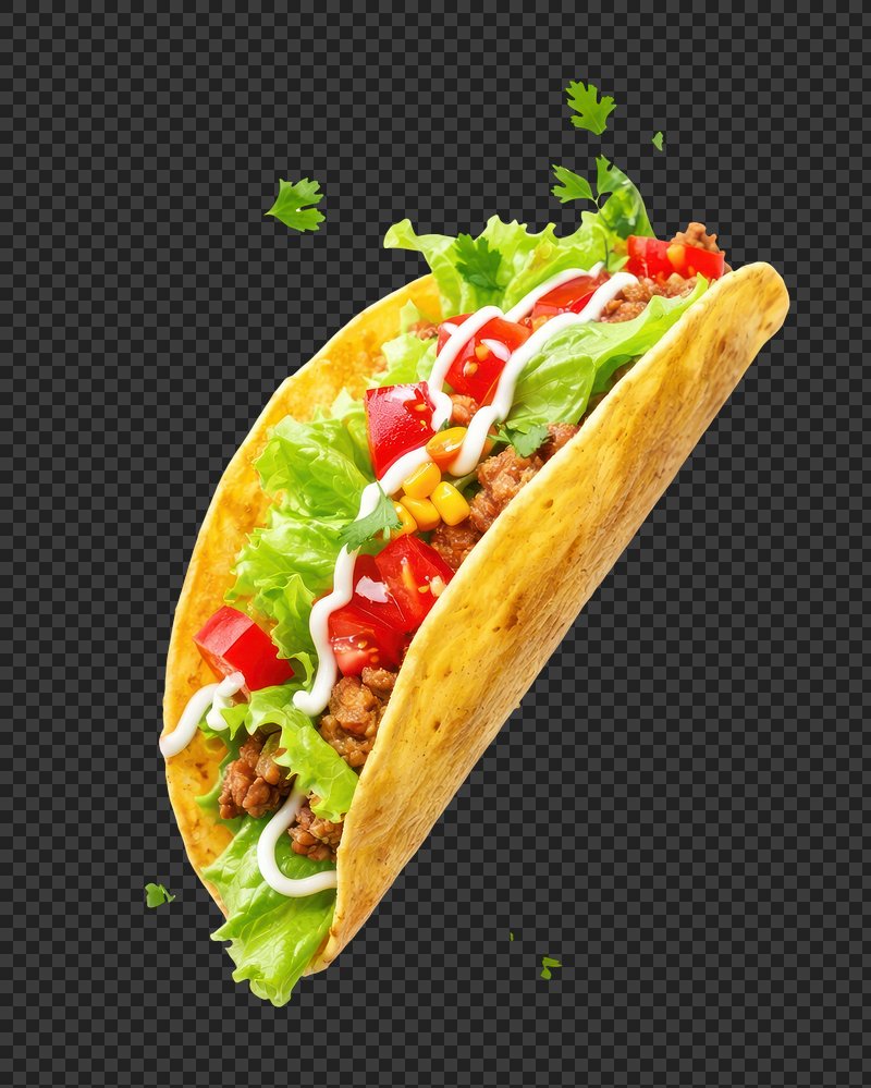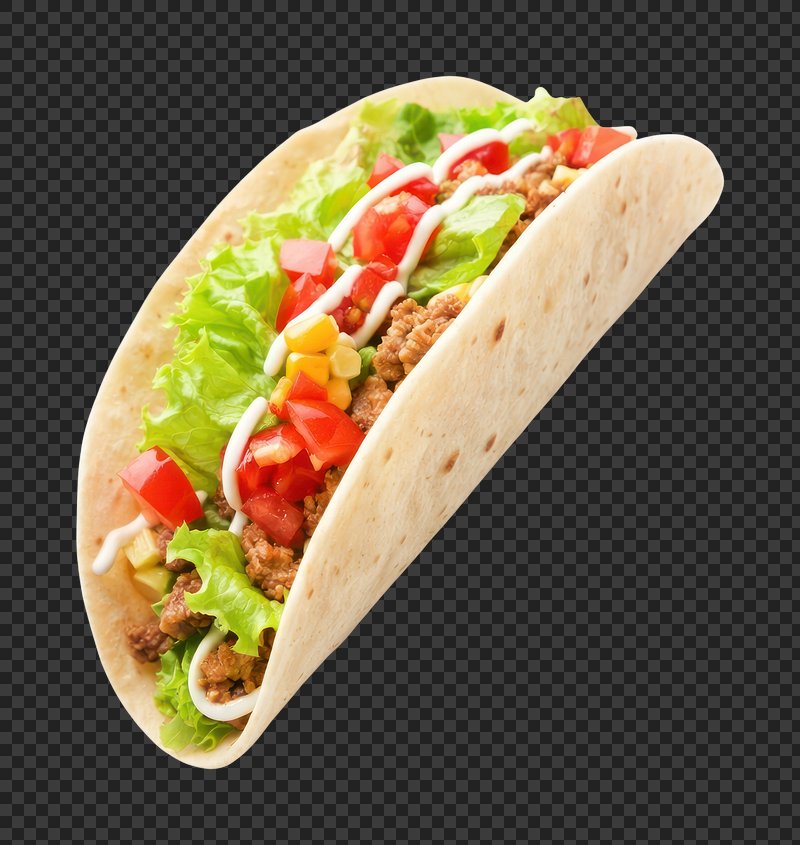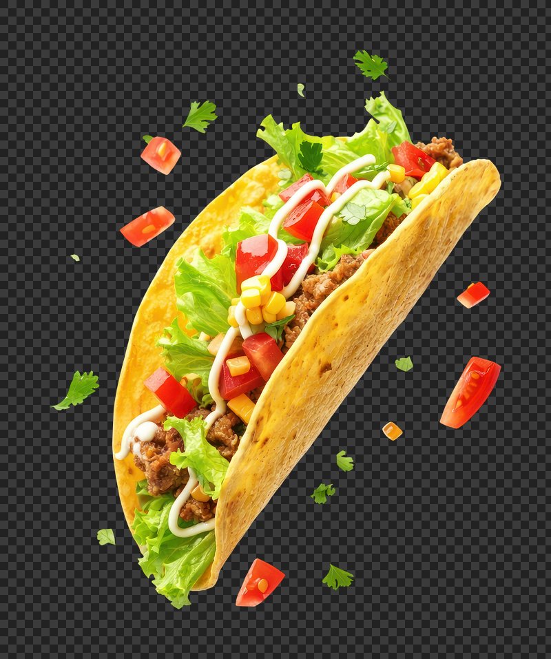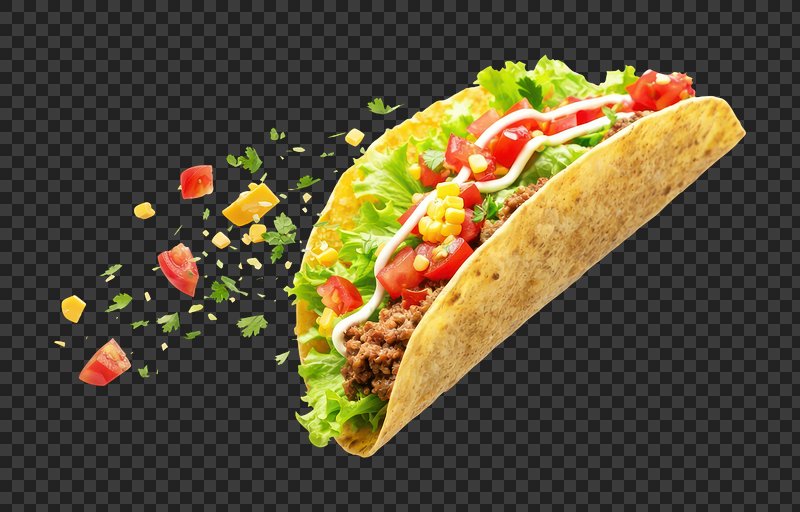 PNG Crispy taco with fresh ingredients. https://www.rawpixel.com/image/25859446/png-crispy-taco-with-fresh-ingredientsView license