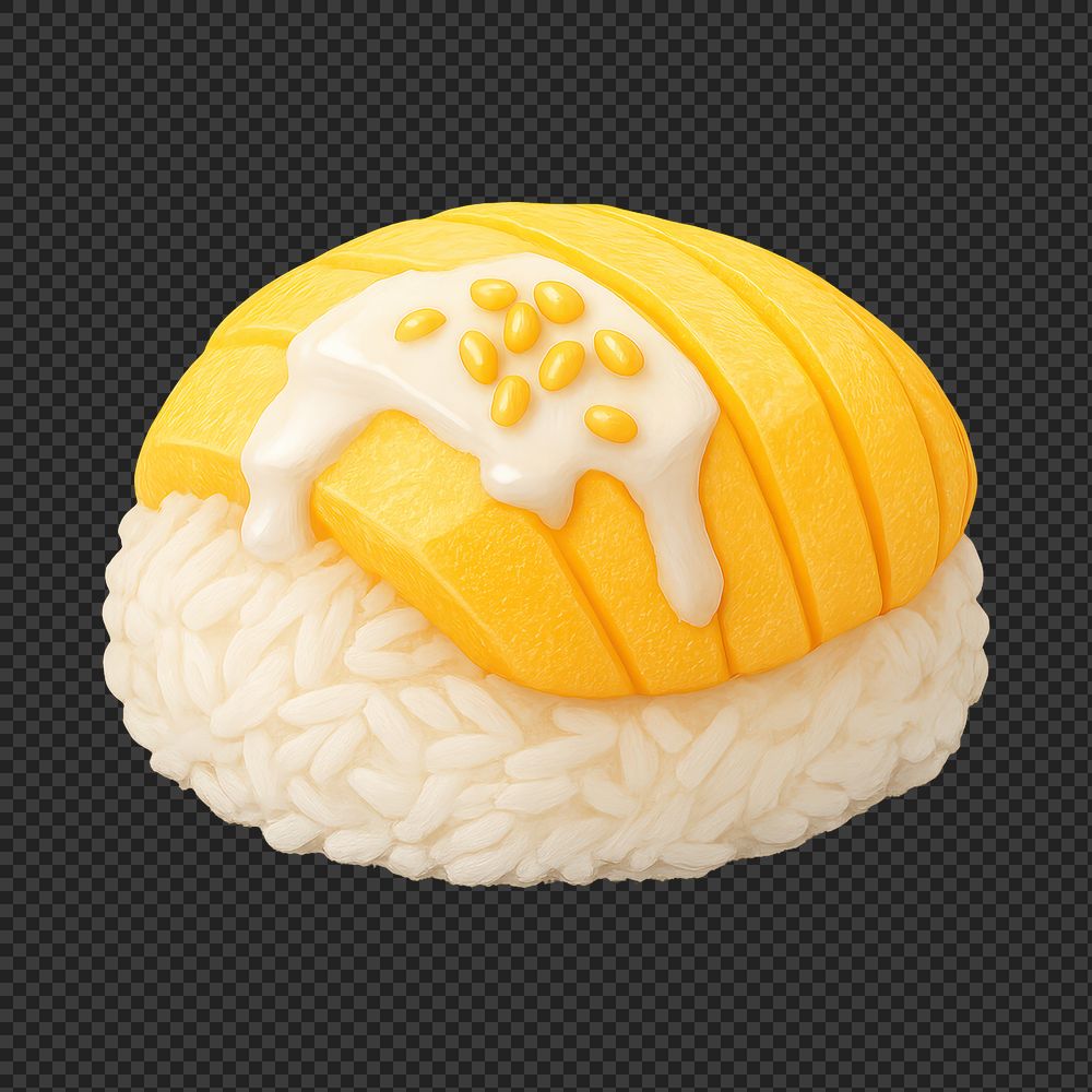 PNG Mango sushi with creamy topping. https://www.rawpixel.com/image/20190932/png-mango-sushi-with-creamy-toppingView license