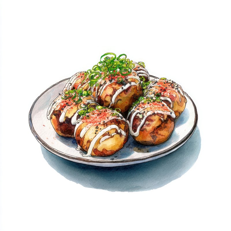 Takoyaki food illustration plate. https://www.rawpixel.com/image/19061643/takoyaki-food-illustration-plateView license