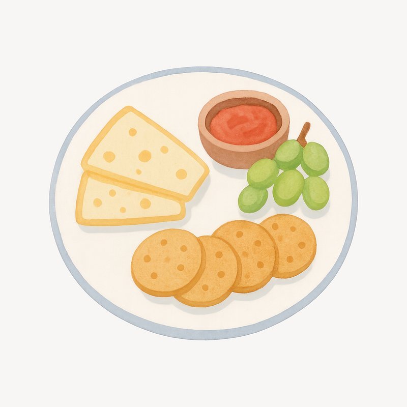 Cheese crackers grapes snack illustration. https://www.rawpixel.com/image/20506314/cheese-crackers-grapes-snack-illustrationView license