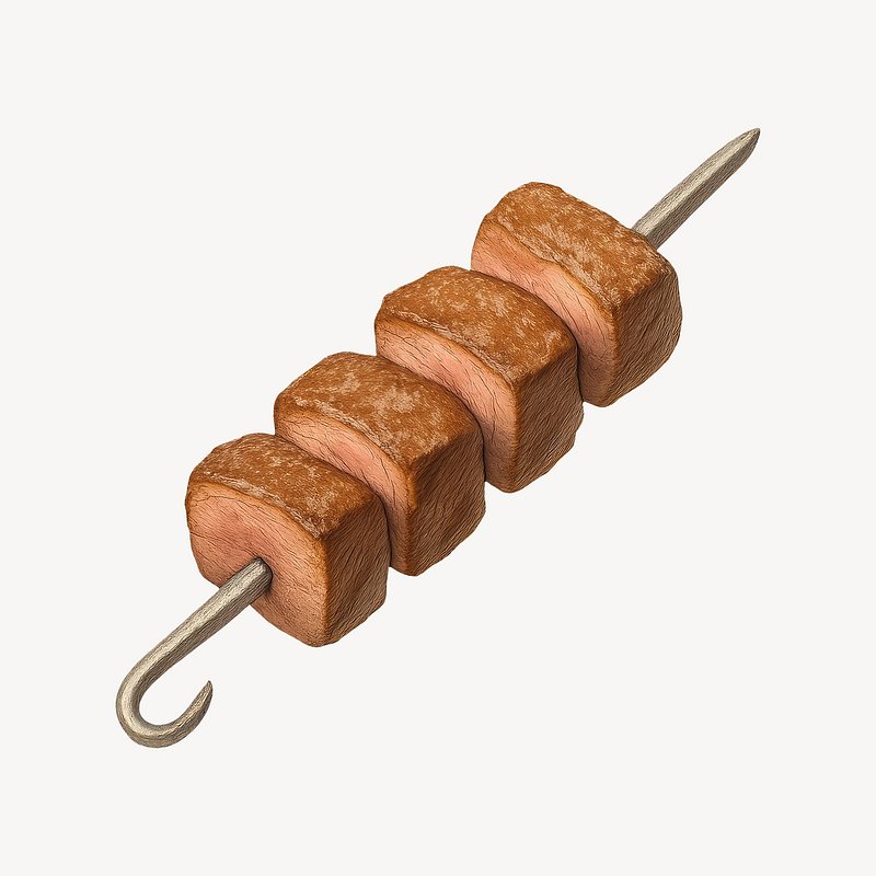 Grilled skewer with meat cubes. https://www.rawpixel.com/image/21694664/grilled-skewer-with-meat-cubesView license